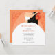 Invitations nuptiales à la mode de douche, avec une illustration des jeunes mariés sur un tango de mandarine et un arrière - plan orange de remous. Obtenez l'affranchissement, les étiquettes de faveur, et les étiquettes postales assortis. Contactez-nous pour que les couleurs faites sur commande assortissent vos couleurs de mariage - PMCustomWeddings@hotmail.com