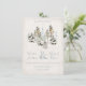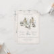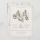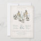 Belle aquarelle hiver neige forêt de vacances faire-part de mariage. Caractéristiques et forêt couvert de neige boisée dans les couleurs bleu, gris et vert doux sur un arrière - plan faux lin. Parfait pour un mariage d'hiver ou de Noël avec une sensation de montagne nature.