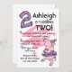 Célébrez le deuxième anniversaire de votre petite fille avec ces adorables invitations à des fêtes personnalisées avec un piggy rose vêtu d'un tutu tacheté de polyka et d'un casquette de fête, un grand polka pointé numéro deux et un arrière - plan amusant. Personnalisez-le comme vous le souhaitez. Des timbres-poste coordonnés, des mugs, des autocollants et des T-shirts pour bébés sont également disponibles. PinkInkArt original!