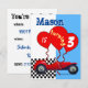 Créez votre invitation! Voiture rouge avec bleu clair et drapeau à damiers. . Facile à customiser ! Cliquez simplement sur "customiser plus loin" pour ajouter du texte, des couleurs et des images !