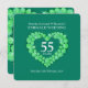 Cartes d'invitation pour le 55e anniversaire de mariage en émeraude. Effet de pierres précieuses émeraudes dans des graphismes imprimés en forme de cœur pour les invitations du 55e anniversaire de mariage en émeraude, personnalisez avec vos propres détails de fête d'anniversaire de mariage. Le 55e anniversaire est traditionnellement associé aux émeraudes et le cœur symbolise l'amour. Graphismes et conception de Sarah Trett pour www.mylittleeden.com