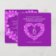 invitations pour le 6ème anniversaire de mariage améthyste avec pierres précieuses violettes. Effet magnifique de pierres précieuses améthystes violettes en forme de cœur dans des graphiques imprimés Invitations pour anniversaire de mariage. Personnalisez avec vos propres détails de fête du 6ème anniversaire de mariage. Le 6ème anniversaire est associé à l'améthyste et le cœur symbolise l'amour. Graphismes et conception de Sarah Trett pour www.mylittleeden.com