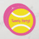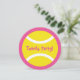 Invitations roses et jaunes rondes de fête d'anniversaire de balle de tennis. Invitations de partie de thème de tennis pour l'anniversaire des enfants, le BBQ, le texte du tournoi etc. Personalizable et la couleur d'arrière - plan. Les sports mignons conçoivent avec le nom et l'âge de l'enfant. Typographie lunatique. Personnalisez pour les joueurs sportifs de garçon ou de fille. Forme coupée par cercle drôle. Jouets d'enfants et conception d'activités pour des célébrations. Faites les invitations circulaires pour les 4èmes 5èmes 6èmes 7èmes 8èmes 9èmes 10èmes 11èmes 12èmes 13èmes accessoires faits sur commande de l'anniversaire etc. pour l'entraîneur de sports/la maman et papa du football.