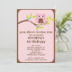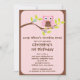 Commencez votre fête d'anniversaire de filles de hibou outre de la droite avec notre invitation mignonne de fête d'anniversaire de hibou de bébé comportant un hibou assez rose et brun se reposant sur une branche d'arbre avec des fleurs réglées à un arrière - plan rose de rayure et à une frontière brune à la mode. Perfectionnez pour un premier anniversaire de filles ou n'importe quel anniversaire d'âge. Entièrement personnalisable par vous avec votre information. conceptions de ©Blackleaf