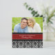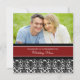 Invitations faites sur commande de photo de mariage de renouvellement élégant de voeu en rouge, motif floral noir et blanc de damassé avec le texte entièrement personnalisable d'inclure vos détails de cérémonie de renouvellement de voeu.