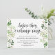 La planification d'une célébration de dîner de répétition de mariage avec la jeune mariée d'à-être et à-est marié, avant leur GRAND jour ? Invitez les invités avec cette carte orientée d'invitation de dîner de répétition de mariage rustique de verdure. Ajoutez vos détails de dîner de répétition en assortissant la police/lettrage noirs.