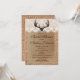 La toile de jute et la dentelle rustiques d'andouillers de cerfs communs impriment des invitations de Fête de la mariée de pays pour une jeune mariée de pays avec un mariage de thème de chasse. Ajoutez juste vos propres mots nuptiales de douche. L'arrière a également l'arrière - plan rustique d'impression de toile de jute. C'est une conception imprimée, tissu non réel de toile de jute.