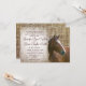 Ce faire-part de mariage occidental de pays rustique a un cheval coloré belle par châtaigne sur un arrière - plan de copie de toile de jute. L'arrière - plan est une conception imprimée de toile de jute, tissu non réel de toile de jute. Le dos de l'invitation a la même conception rustique de toile de jute de style campagnard avec le mot "amour" en manuscrit. Vous pourriez changer ces mots pour les personnaliser avec les noms des jeunes mariés si vous vouliez à. Ces invitations de mariage de thème de pays sont parfaites pour les mariages, les jeunes mariées et le marié qui montent ou montrent des chevaux, et n'importe qui de cowboy qui sont une cow-girl ou aiment des chevaux, ou ont un cheval, une ferme, ou un mariage orienté de ranch.