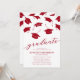 Des invitations minimalistes à des soirées de remise de diplômes avec des casquettes en mortier rouge, et un modèle de texte moderne facile à personnaliser.