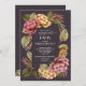 Élégantes fleurs d'aquarelle en rose et or avec une belle verdure sur un arrière - plan violet foncé, parfait pour les invitations de fiançailles mariages ou toute occasion spéciale, il suffit de changer le libellé. CORRESPONDRE des articles dans notre magasin.
