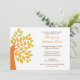 Commencez votre fête de Thanksgiving avec notre élégante invitation d'action de grâce avec un bel arbre d'automne d'automne en vert et orange chartreuse. customisez simplement avec vous les informations de la fête de Thanksgiving et vous êtes tous prêts à partir !