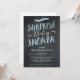Invitations surprises de douche bébé avec design de tableau noir blanc et bleu. Customisez le libellé avec vos informations sur la douche.