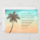 Invitations de mariage de plage. Un ciel bleu et une plage tropicaux poncent la texture avec une illustration brune de palmier. Invitations tropicales élégantes et à la mode de mariage. Perfectionnez pour un mariage de destination. Produits assortis disponibles.