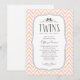 Invitations de douches bébé jumelles avec un design rayé de chevrons rose clair et orange. Customisez le libellé avec vos informations sur la douche. Avant de commander, affichez un aperçu de l'invitation fini à l'écran.