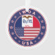 Badge de l'Iowa avec le drapeau de l'Iowa et le drapeau des USA couleurs, forme arrondie. Emblème de l'Iowa. Sceau de l'Iowa. Collection USA Etats.