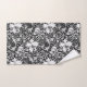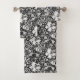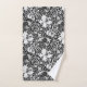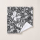 Serviette réglée dans une impression florale vintage de William Morris des lis et des iris stylisés, numériquement augmentée et colorée, aux nuances de gris/de gris et le blanc sur un arrière - plan noir