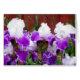 Les iris barbus pourpres et blancs fleurissent avec le contraste dramatique.