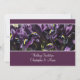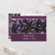 Une photo d'iris violets profonds à la texture veloutée, sur une carte métallique au champagne avec une bordure violette assortie au sommet et au fond. Une bande de la photo iris est répétée à l'envers, avec un arrière - plan métallique couleur champagne simple avec un texte violet coordonné couleur. La carte métallique peut être changée en n'importe quel stock de carte de votre choix.