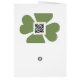 Cette carte de St. Patrick's Day comporte un trèfle à quatre feuilles vert et or sur le devant, ainsi que les couleurs du drapeau irlandais. A l'intérieur est une bénédiction irlandaise avec les bénédictions de la Saint Patrick gaélique, "Éire go Brách" et "Lá Fhéile Pádraig Sona Duit", c'est le parfait pour envoyer tous vos voeux de la Saint Patrick.