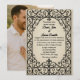 A vision of wrought artistry and soft grandeur, this wedding invitation emerges like a whisper from a centuries-old château. The design is framed with delicate, ornamental ironwork—its symmetrical flourishes echoing classical gates and vintage balustrades. The filigree detail gracefully embraces the blank space at center, inviting your words to breathe and command attention. The front exudes stately romance, grounded in architectural symmetry and subtle shadows that lend a three-dimensional elegance to the entire composition.