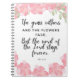 Un joli journal de l'Ecriture chrétienne avec un arrangement floral d'aquarelle de roses roses et de verdure en haut et en bas, sur un arrière - plan blanc, avec le verset de la Bible "L'herbe s'enfonce, la fleur s'estompe, Mais la parole de notre Dieu reste éternellement." Ésaïe 40:8 dessous.
