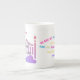 jolie porcelaine, bonne dimension effet brillant bien dans l'ensemble. Le motif et les couleurs sont réussis.Je trouve néanmoins dommage de ne pas occuper tout l'espace avc le motif car la partie rouge au dos de la tasse est trop présente et pas intéressante visuellement.