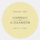 Modern wedding favor stickers featuring a warm island citrus yellow background and clean minimalist typography. Perfect for sealing favor bags, boxes, or jars, these stickers add a polished finishing touch to summer, destination, and contemporary weddings. Fully customizable and designed to coordinate with the Island Citrus wedding collection.
