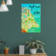 Colorful Italy poster ready for framing. Bold artwork in mixed media of spectacular "Amalfi Coast of Italy". Shows quaint pastel colorful Italian houses stacked on cliffside by Mediterranean Sea. Aqua and other splashes of color predominate. Adds interest, pastel colors, art and travel interest to any room.