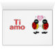 "Ti amo" - "Je t'aime" en italien. Donnez cette belle carte le jour de la Saint-Valentin ou quand vous voulez express votre amour. Les coeurs en tiges de fleurs flottent au-dessus d'un arrière - plan de rubans rouges et or.