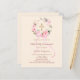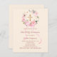 A soft ivory blush background, decorated with watercolored pink and white flowers in a wreath and a golden cross. A pink bow. Personalize and add a name and details.