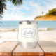 Gift your wedding bridesmaid with this trendy and personalized, stainless steel wine tumbler with her name in stylized, grey script inside a white, oval design. Background color is an ivory color. Perfect for a bachelorette party as well! Personalize your wine tumbler by editing and replacing bridesmaid name with desired name. Available in many, popular bridal party color schemes.