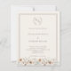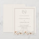 A soft ivory colored background decorated with a hand drawn crest. Soft florals. Warm taupe colored frames and text. Personalize and your monogram initials, names and details.