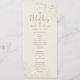 Ce programme de mariage élégant présente des illustrations florales d'or délicates sur un arrière - plan d'ivoire doux avec des polices de caractères modernes et serif. Idéal pour lister les détails de votre cérémonie et de votre mariage dans une présentation formelle et raffinée. Un ajout intemporel à votre journée de mariage classique.