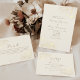 Elégante carte RSVP en ivoire avec des accents floraux or raffinés et des détails romantiques. Inclut l'espace pour les noms d'invités, la réponse de présence et les préférences de repas (végétarien, sans gluten, végétalien). Un complément intemporel à votre suite de faire-part de mariage classique ou formelle.