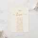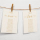 In the upper part, there is the table number written in a handwriting script and the word Table above, in smaller caps (hand letters). Under them, there are the 10 guest names, in similar hand letters. All text is red, the background is ivory.