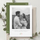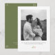 This chic and minimalist wedding save the date card features lovely blush pink watercolor floral accents, couple photo and contemporary set of fonts against ivory and sage green backgrounds. The design is a fresh and modern take on the classic wedding save the date. The typographical elements at the back draws attention to the date.