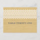 Carte postale moderne et branchée Rustic Chevron Numéro de table avec un arrière - plan imprimé art numérique de texture de grain de bois et un motif zig zag de rayures de chevron blanc. Ce design est parfait pour un mariage rustique mais élégant. Facile à customiser, il suffit d'ajouter le ou les numéros de table appropriés dans le champ de texte fourni. Cliquez sur "Customiser" pour trouver d'autres options de personnalisation.