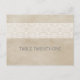 Simple et élégant Rustic Lace Table Numéro Carte postale avec un papier texturé vintage look arrière - plan et une bordure motif en dentelle douce et dainty en blanc. Facile à customiser, il suffit d'ajouter le ou les numéros de table appropriés dans le champ de texte fourni. Cliquez sur "Customiser" pour trouver d'autres options de personnalisation.