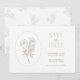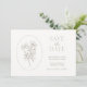 Élégance moderne avec un charme vintage d'autrefois. Cette charmante carte de faire-part de mariage ivory blanc et sable présente un ensemble contemporain de polices dark taupe, éléments de script et illustration florale botanique. Le verso élève le design de la carte avec une illustration de motif botanique pour contraster.