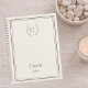 A timeless ivory colored planner designed with a refined monogram and delicate warm taupe wreath details.
