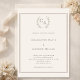 A soft ivory colored background decorated with a hand drawn crest. Warm taupe colored frames and text. Personalize and your monogram initials, names and details.