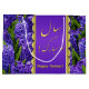 Noble, illustration persane élégante de nouvelle année : la frontière de Pourpre-or sur un champ de fower de jacinthe avec la nouvelle année souhaite en anglais et le farsi.