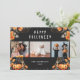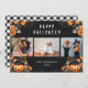 Belle carte Halloween en plastique noir et blanc avec un casquette noir à l'avant et un motif en plastique noir et blanc à l'arrière. Personnalisez facilement ces 3 cartes photo Halloween avec vos photos, le nom de famille et l'année ou autre texte.