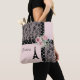 Emportez un morceau de romantisme parisien partout avec ce sac fourre-tout chic et élégant. Doté d'un design captivant, il allie magnifiquement des panneaux roses moelleux avec d'élégants motifs en dentelle noire, évoquant le raffinement français classique. Une bande de pois-pois noir et blanc enjoué traverse diagonalement le design, ajoutant une touche de contraste moderne. L'angle est orné d'un délicat ensemble de roses roses rousses et de verdure, créant un accent doux et naturel. La silhouette emblématique de la Tour Eiffel se dresse fièrement en bas, accompagnée de la phrase chaleureuse "J'adore" en écriture gracieuse. Cet accessoire polyvalent est parfait pour les nécessités quotidiennes, les voyages d'achat, ou simplement ajouter une touche de fantaisie française à votre ensemble.