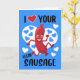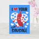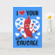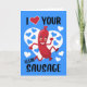 Cette carte drôle de la Saint-Valentin représente une saucisse mignonne avec des cœurs.