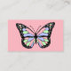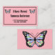 Côté un : Deux beaux papillons accompagnent le message 'I Have Moved' (qui peut être changé en 'We Have Moved' ou un autre message personnalisé). En bas, vous pouvez personnaliser votre faire-part mobile avec votre nom et votre nouvelle adresse. La carte est rose avec du texte noir. Côté deux : Un grand papillon est de l'autre côté.