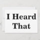 Carte blanche standard avec "J'ai entendu ça" dans une grande police noire en gras des deux côtés.