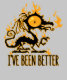 Illustration de dessin vectoriel d'un dragon croustillant brûlé, englouti dans les flammes avec le texte I've Been Better. Tags : noir, brûlure, dessin animé, croustillant, dragon, feu, flamme, chaud, monstre, animal, reptile, lézard, catastrophe, chaos, mignon, brûlant, ablaqué, blaze, brûlant, brûlant, engulé, meilleur, humour, drôle, créature, mythologie, magique, légendaire, mythique, respiration de feu, volant, serpent, hydra, lisk, léviathan, wyvern