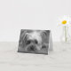 Rien ne dit mignon comme un chiot Yorkshire Terrier ! Cette carte de vœux amusante présente un portrait en noir et blanc d'un adorable chiot Yorkie se reposant sur un porche en bois. Elle est prête à vous aider à envoyer des vœux à votre famille et à vos amis.