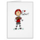 Un chiffre de bâton joueur de football en uniforme rouge et de casque de football T-shirts du football de l'amour I dessus, tasses, cartes, autocollants, boutons du football, sacs fourre-tout, et d'autres habillement et cadeaux de joueur de football.